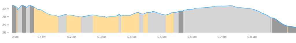 Il percorso è urbano e pianeggiante, con pavimentazione regolare e senza tratti particolarmente sconnessi.