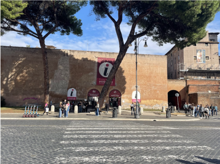 Per l’Info Point del Parco Archeologico del Colosseo, dopo circa 250 metri, sulla destra, è presente una rampa che consente di attraversare via dei Fori Imperiali e raggiungere l’ingresso accessibile. Nell’Info Point è presente il personale di accoglienza, in grado di fornire informazioni sui percorsi agevolati e sui servizi disponibili all’interno delle aree archeologiche.
